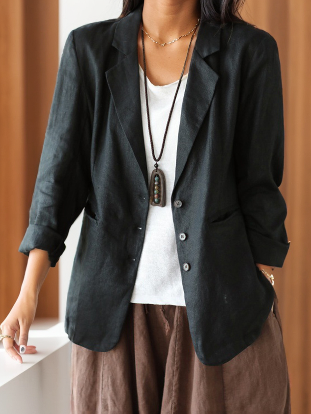 Shawl Collar Loose Casual Cotton And Linen Blazer